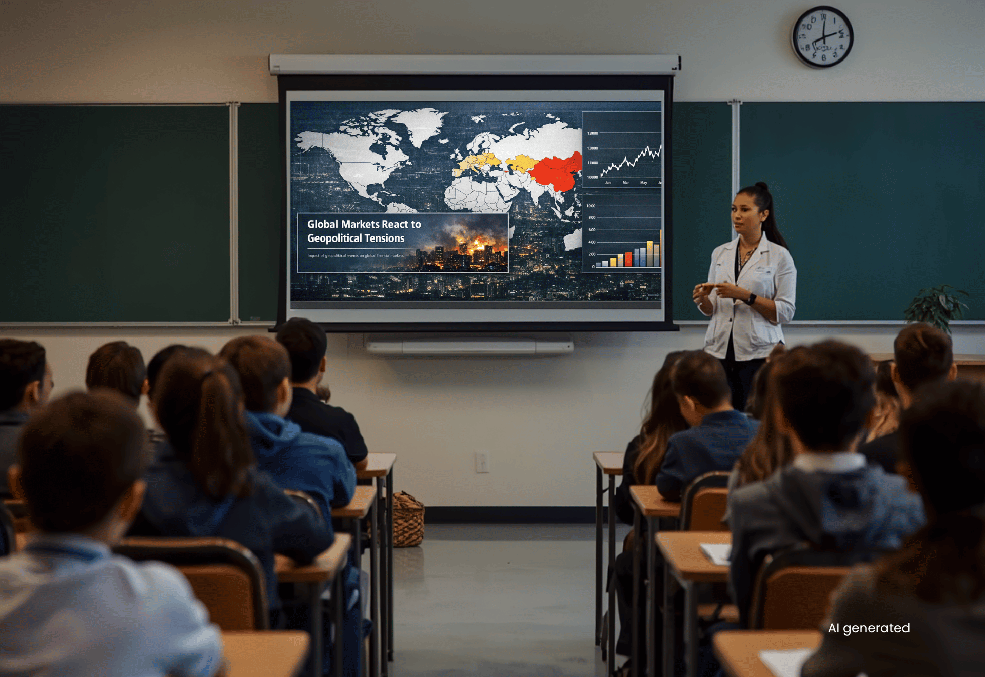Her bruges aktiemarkedet som et spejl af, hvordan globale begivenheder, politiske udmeldinger og forventninger påvirker markederne. Eleverne arbejder med sammenhængen mellem verdenssituationen og markedsreaktioner – og får et sprog for usikkerhed på samfundsniveau.